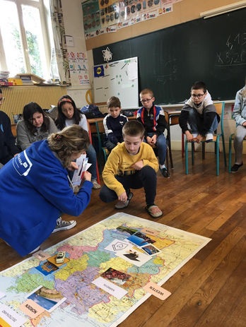 À l'école, de la grande section au CM2, l'apprentissage de l'allemand devient ludique : les élèves explorent des villes, découvrent des spécialités et des monuments, le tout en jouant et en pratiquant la langue. Pour se présenter, un jeu supplémentaire a été créé, et les élèves ont collaboré pour réaliser un panneau franco-allemand. Même les plus jeunes commencent à voyager outre-Rhin grâce à cette immersion passionnante !