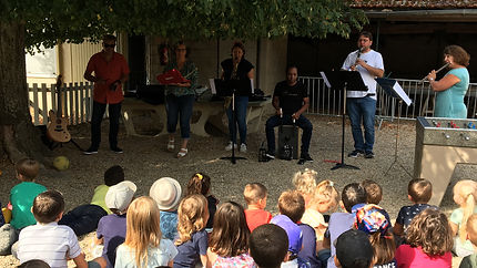 Les professeurs de l’école de musique viennent jouer de leurs instruments sous notre tilleul et inviter nos élèves.